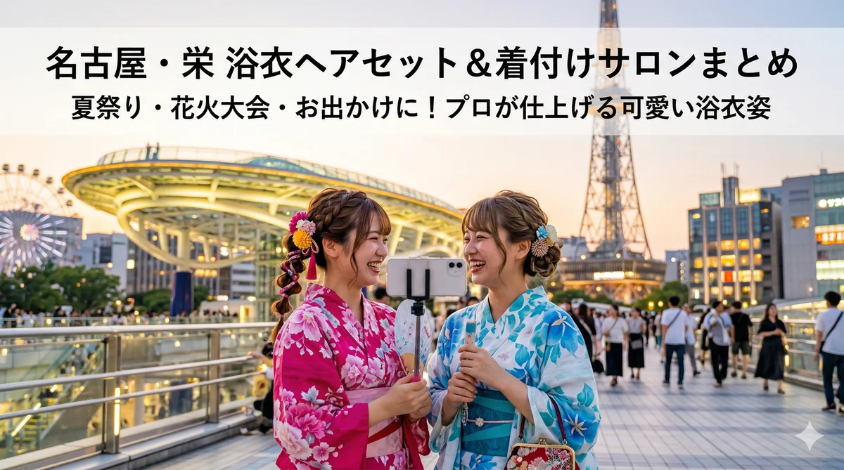 ヘアセット【名古屋・栄】浴衣の着付けとヘアセットが安いサロン5選|名古屋駅からもアクセス良好 2026年3月23日 master 安いヘアセットサロンやマツエクマツパ専門店まとめ(ヘアメイク.着付け)500円や1000円特集。全国.名古屋東京大阪福岡
