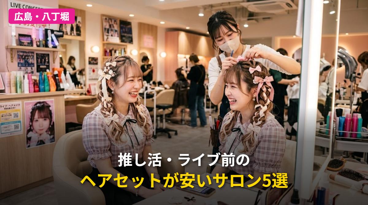 この記事では広島・八丁堀エリアでヘアセットが3,850円~と手頃で、推し活やライブ前に使えるサロンを5店舗ご紹介します。